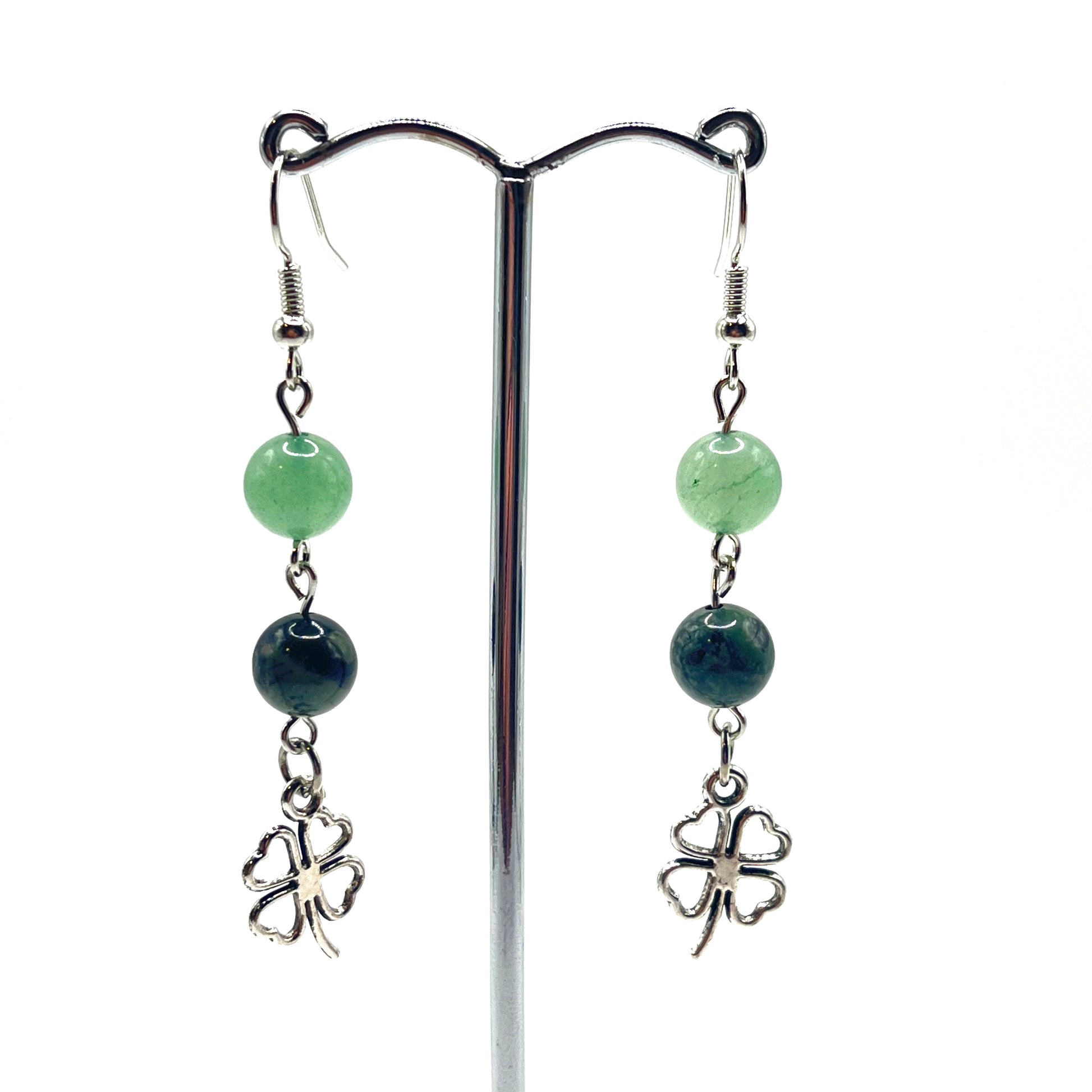 Oorbellen kambala/groene aventurijn met klavertje