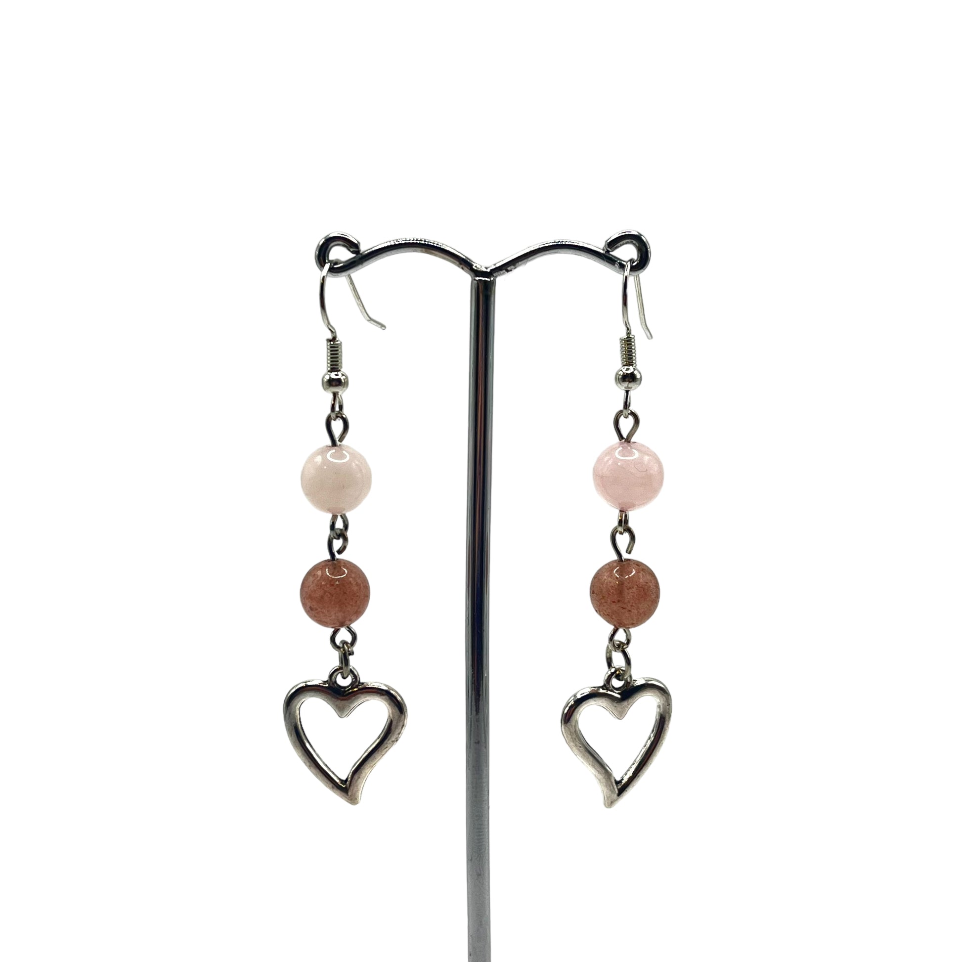 Oorbellen rozekwarts/aardbeienkwarts met hartje