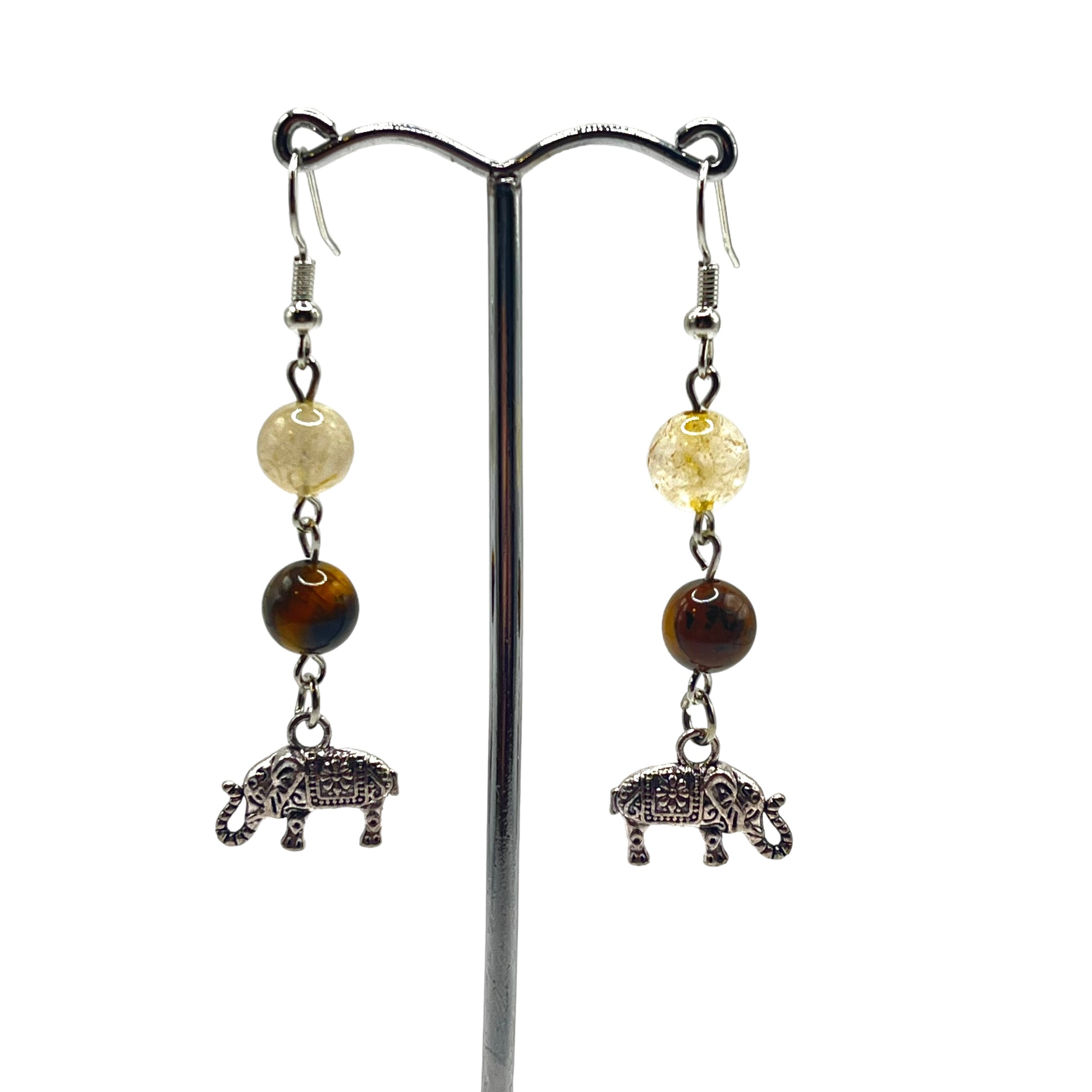 Oorbellen tijgeroog/rutielkwarts met olifant